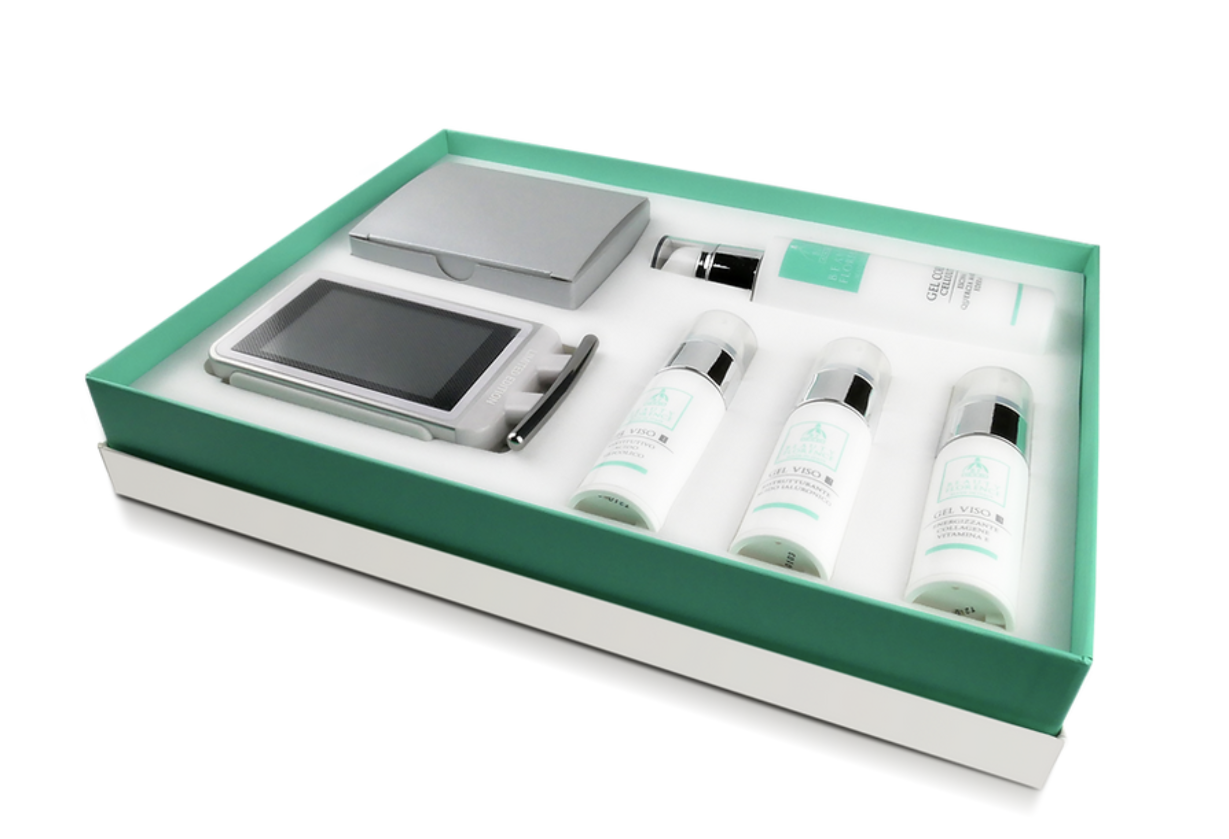 Like Beauty Florence Plus, Mini Device also works on the principle of iontophoresis, a safe, effective and innovative methodology for treating areas of the face such as the eye contour and mouth contour, which are unattainable with the use of standard technologies.